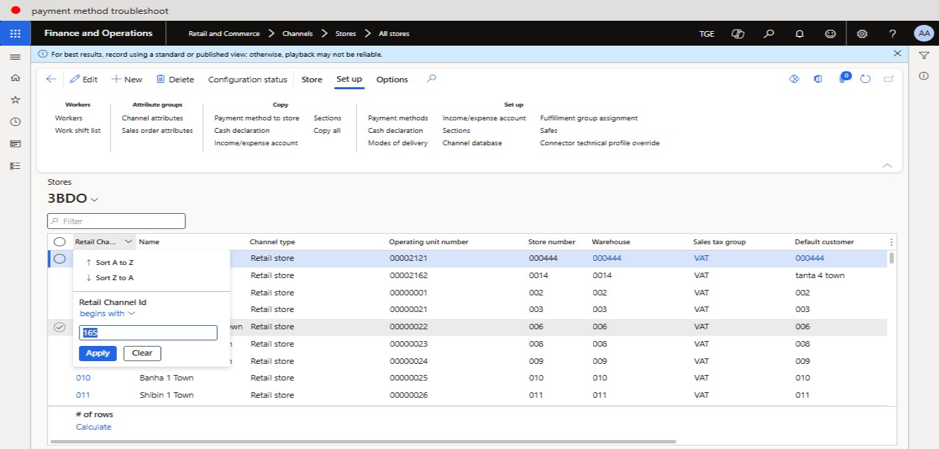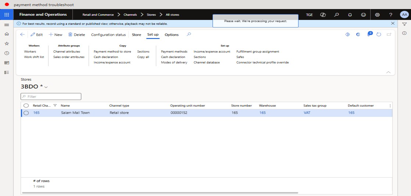 - Go to Retail and Commerce > Channels > Stores > All stores.