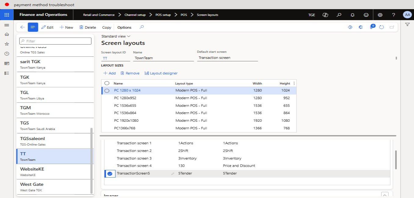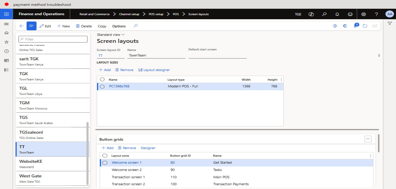 - Go to Retail and Commerce > Channel setup > POS setup > POS > Screen layouts.