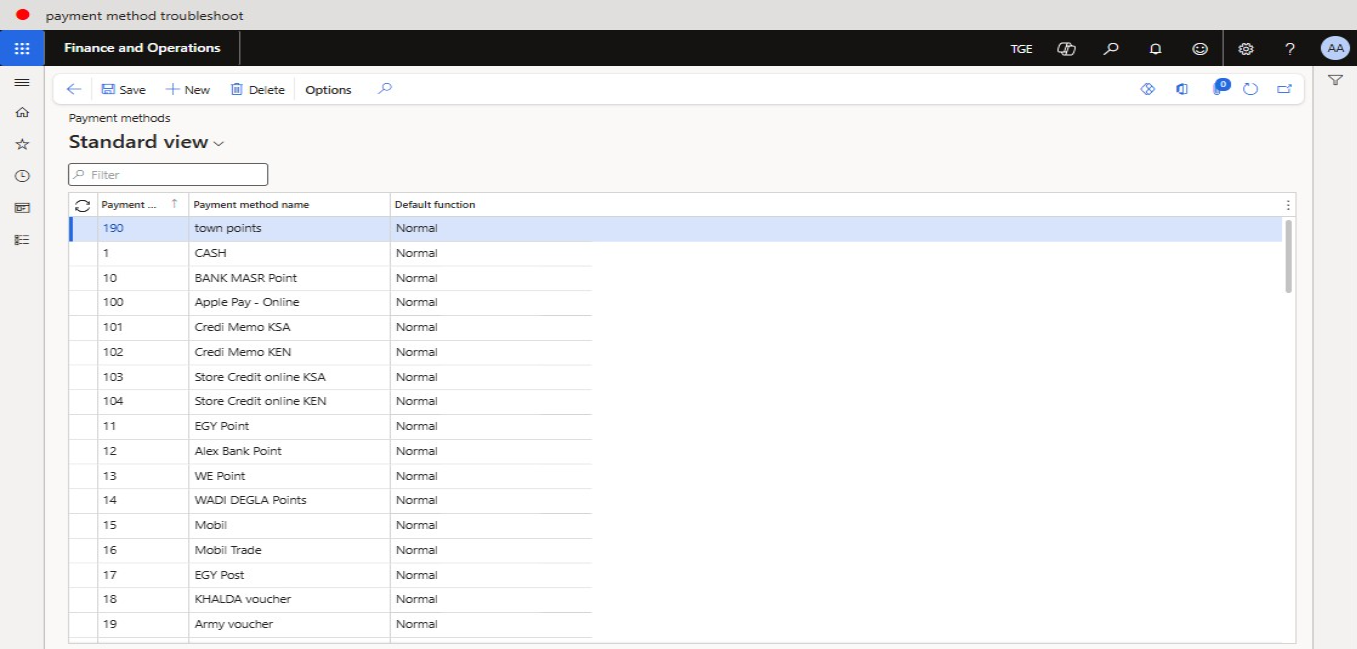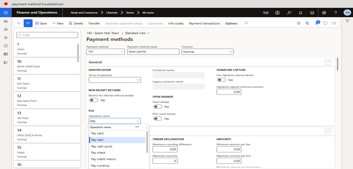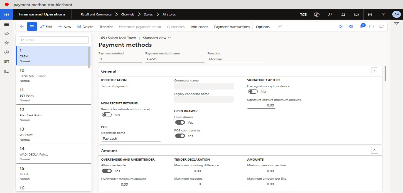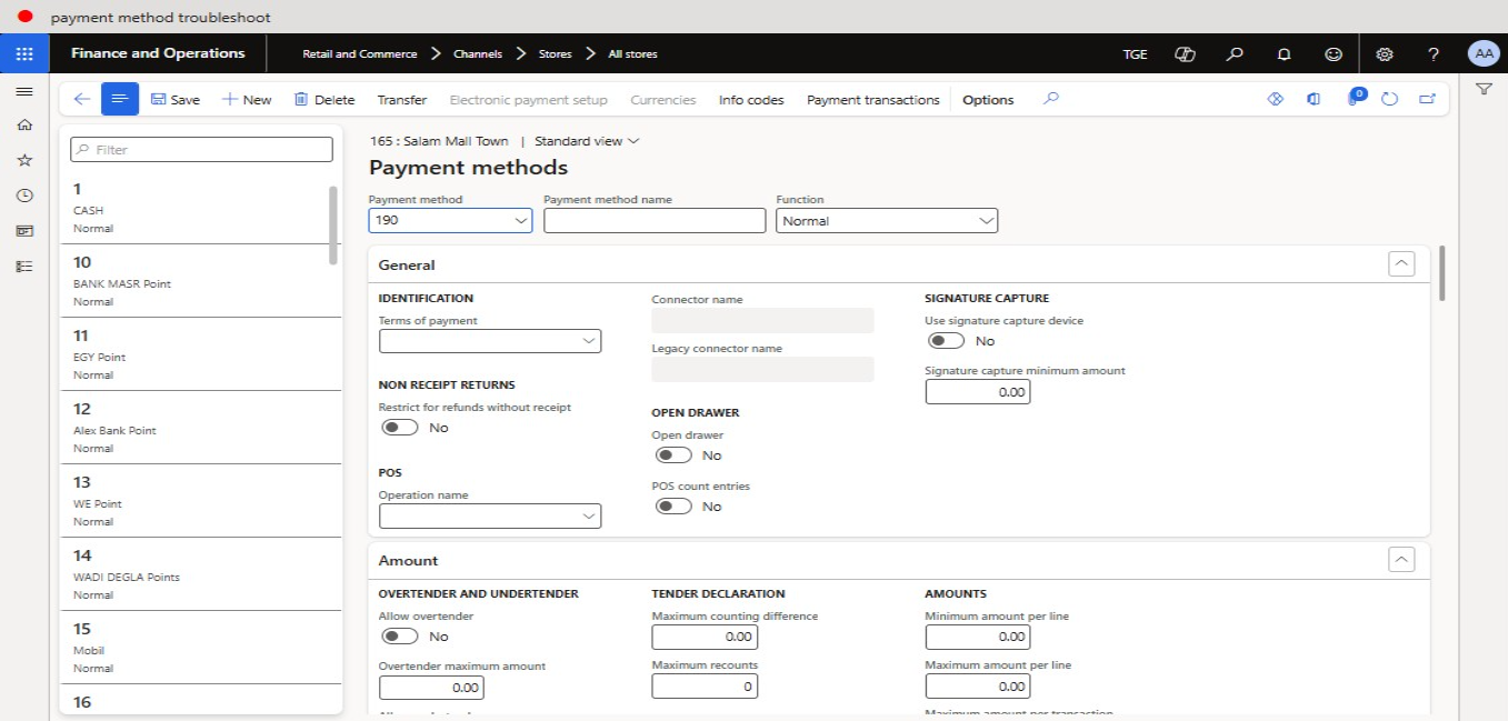 - Go to Retail and Commerce > Channel setup > Payment methods > Payment methods.