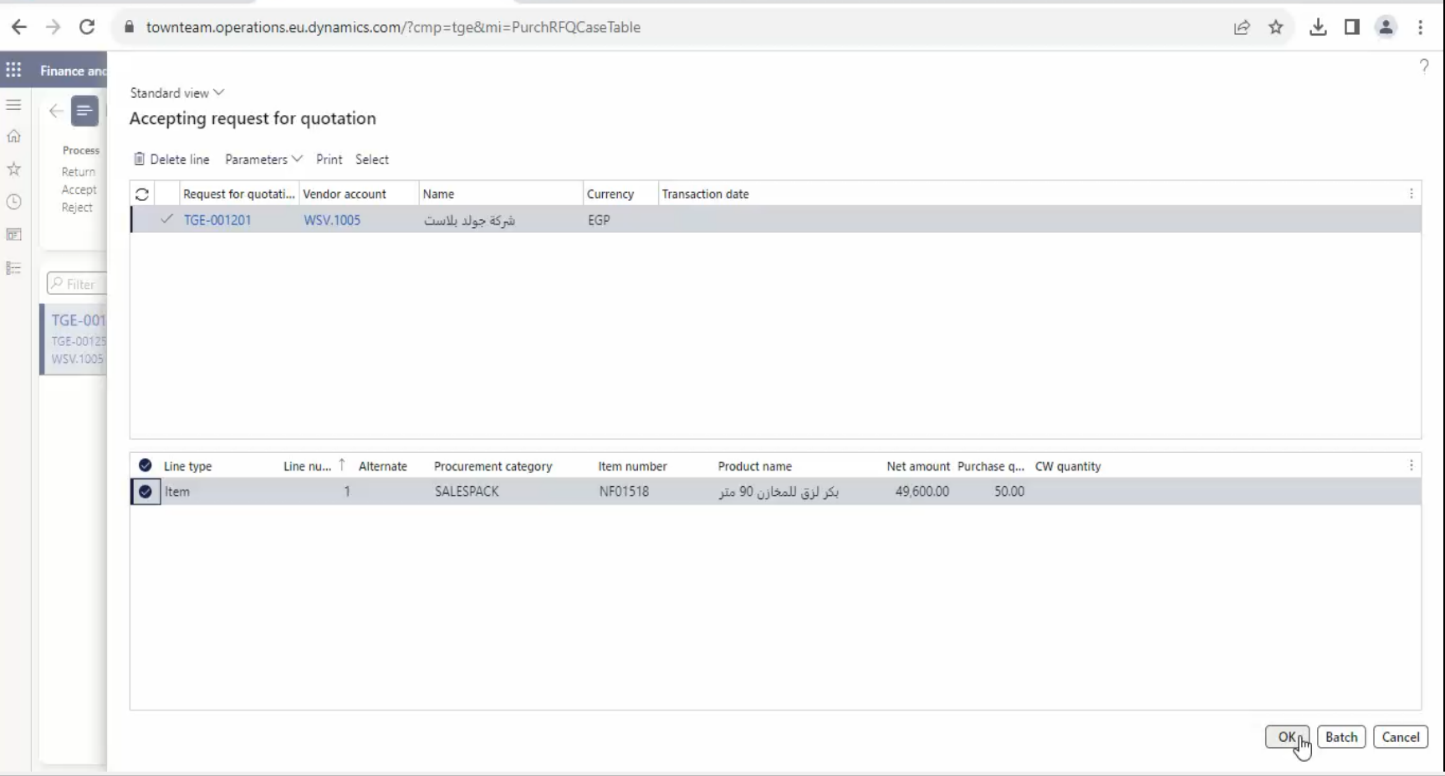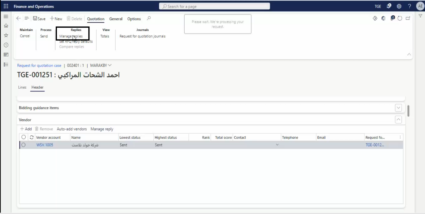 - Press on Request for quotations.