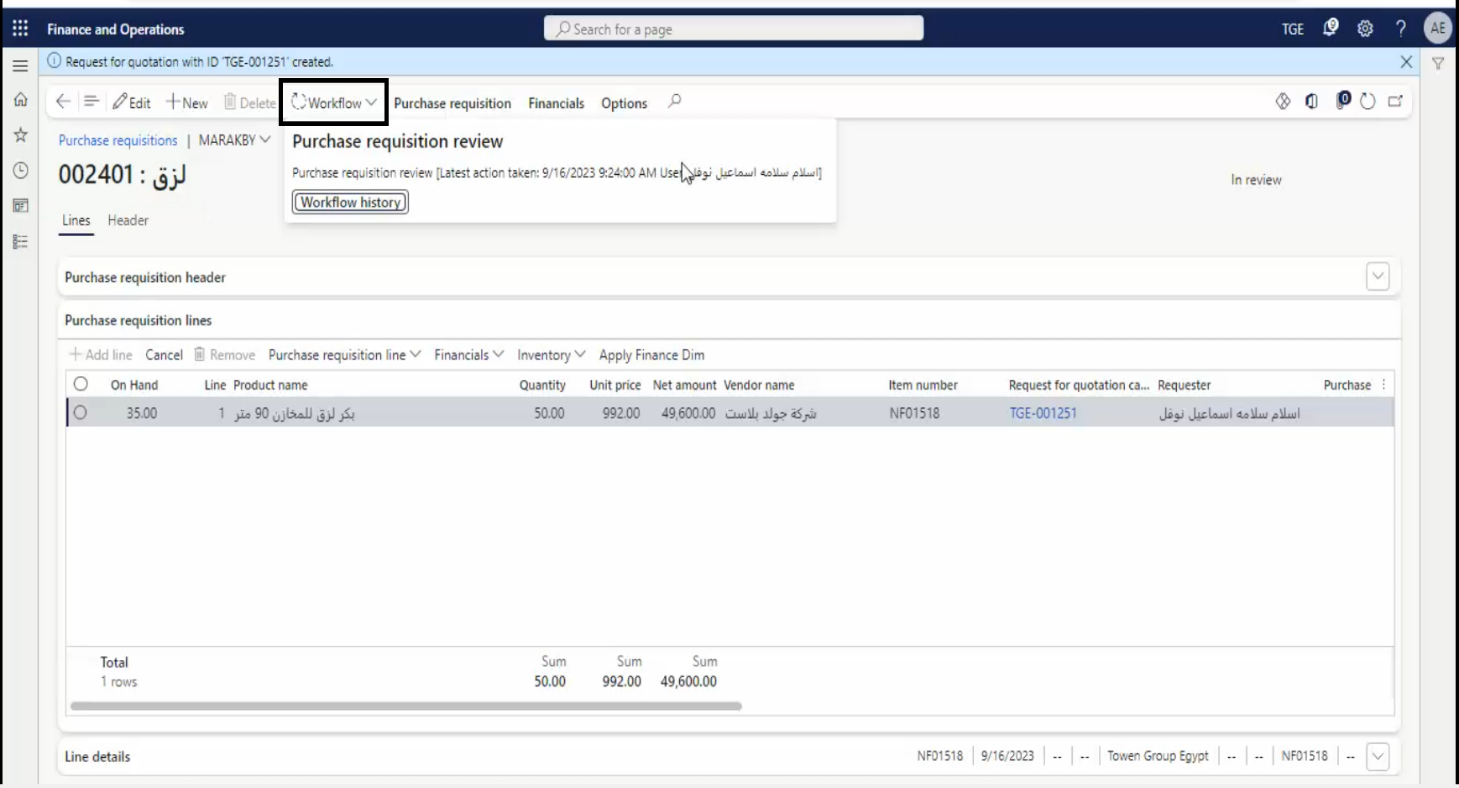 - At the end of Purchase Requisition press Workflow.