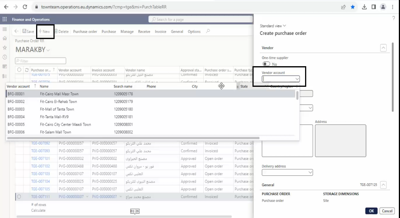 - Press new then add vendor account.